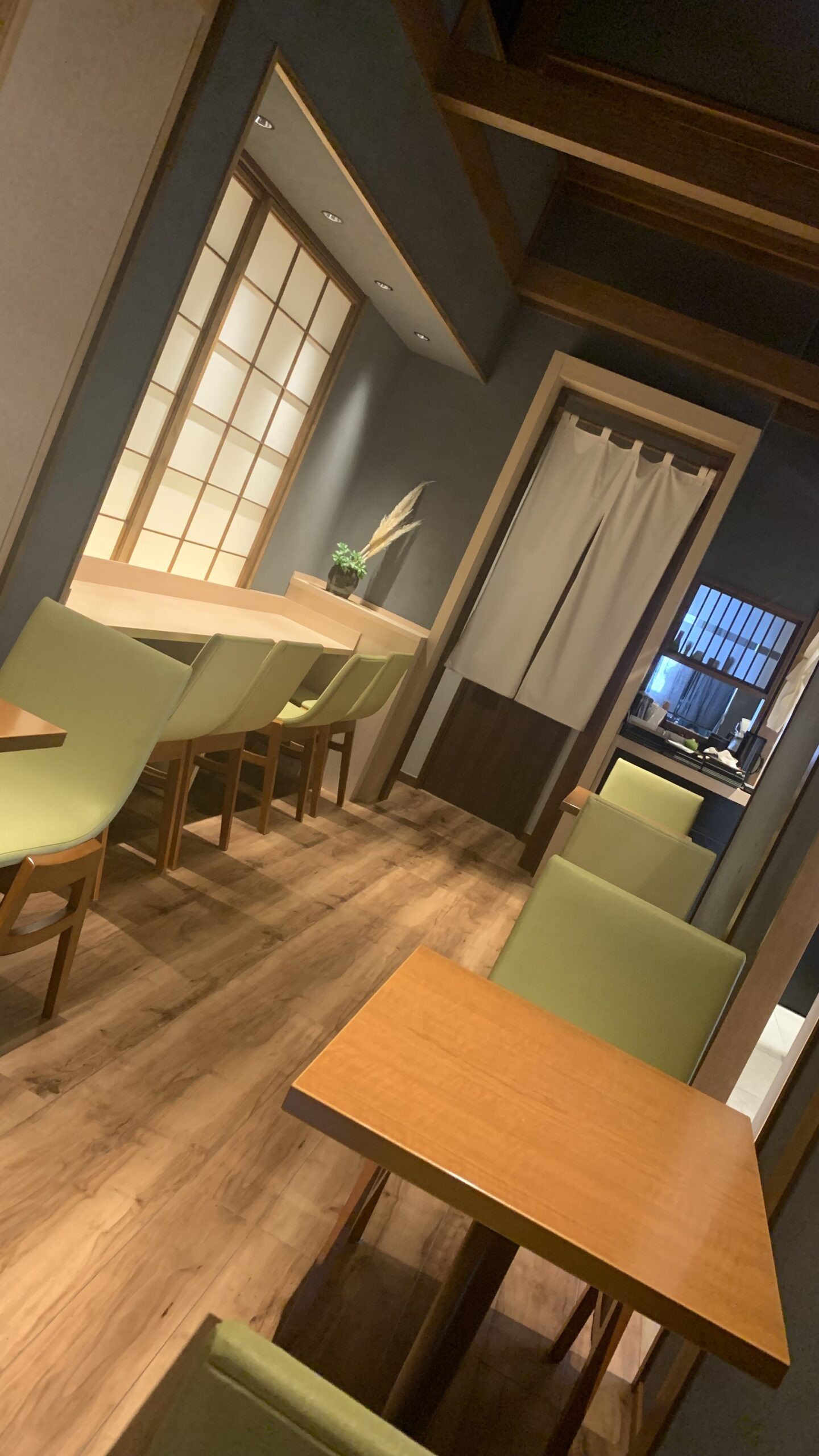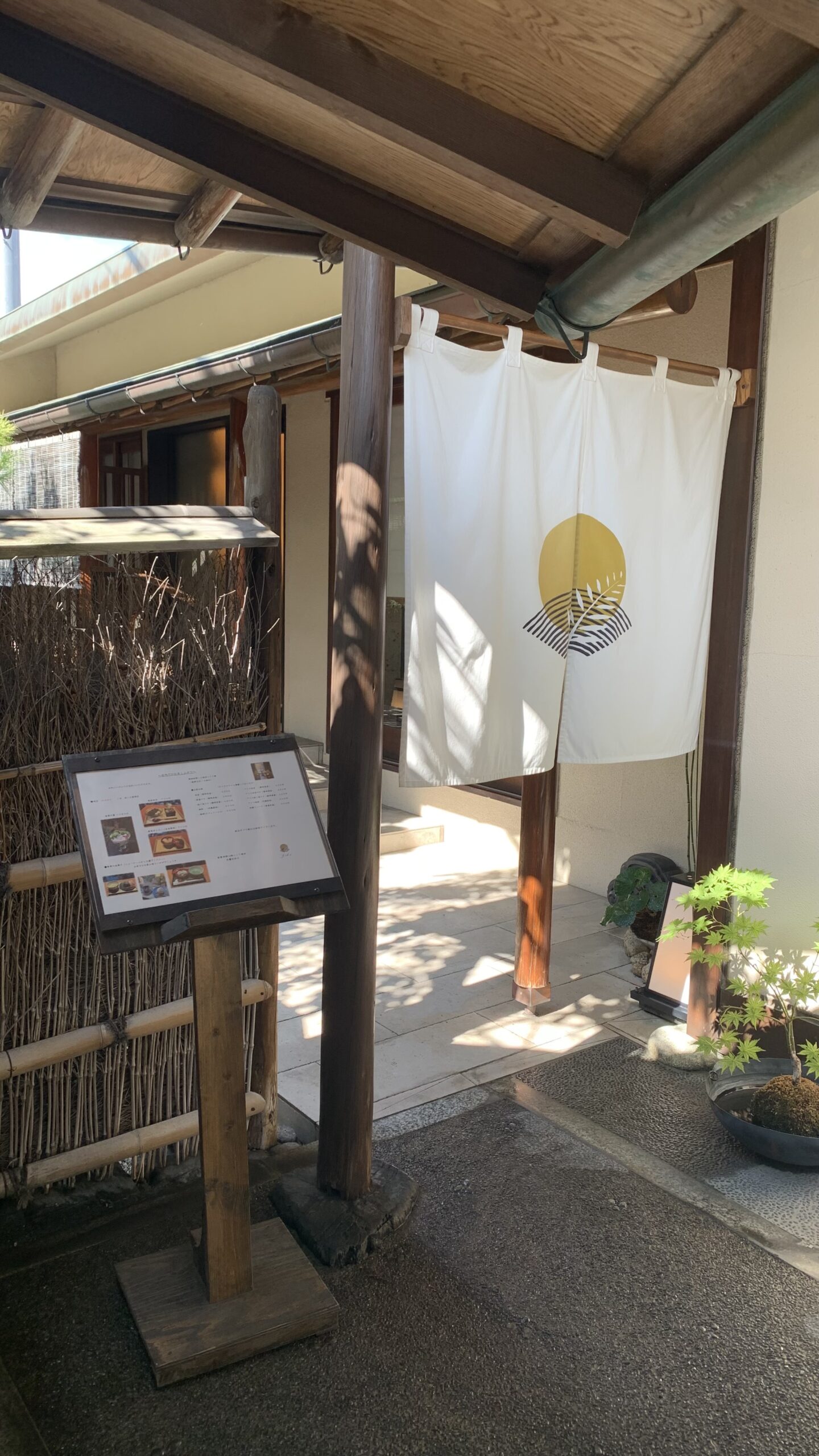 「萬鱗」の門をくぐると、正面に「萬鱗」の入口があり、左手に「時空」の入口があります。